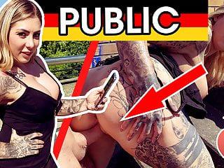 Schoenes junges Babe mit giganto Titten reibt sich die schoene Pussy